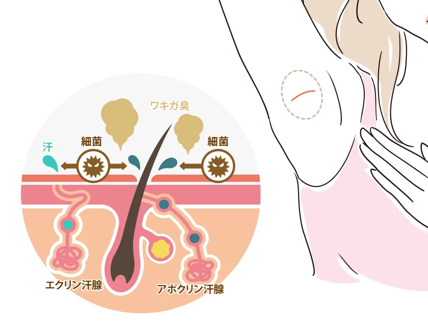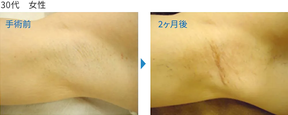 汗やにおいの原因となるアポクリン汗腺やエクリン汗腺を確実に取り除くことができ、再発しにくいのが特徴です。