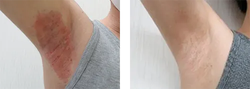 ペアドライの場合、治療直後は肌に赤みが発生しております。治療後2週間ほどで傷跡と赤みが目立ちづらくなります。