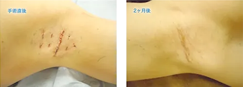 施術直後:切開の傷跡を縫っている状態です。治療後2ヶ月ほどで傷跡が目立ちづらくなっていきます。