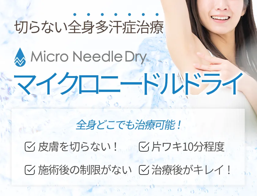 当院では、RF(高周波)技術を用いた「マイクロニードルドライ」という最先端の多汗症治療を提供しています。