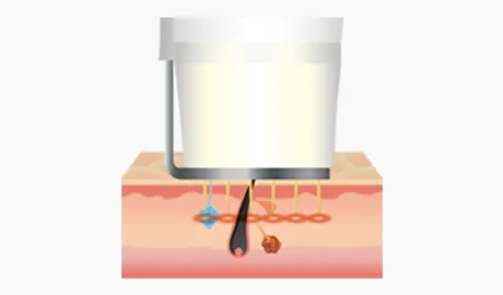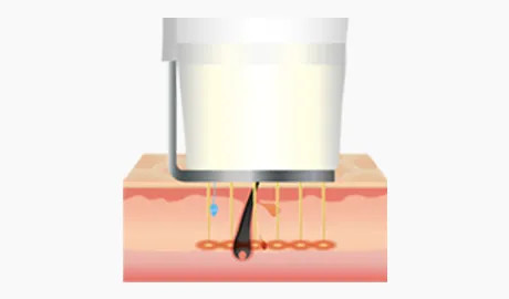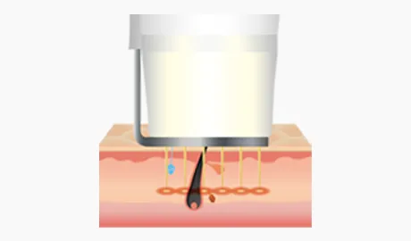 エクリン線・アポクリン線の位置に応じ、4~6段階に深度を変えて照射針を差し入れます。